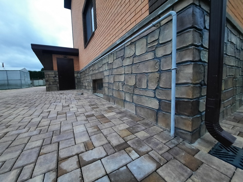 К декоративном бетону мы пришли сквозь тернистый путь отделки натуральным камнем. Можем с уверенностью сказать, что натуральный камень смонтированный «вналипку» при помощи клеев или монтажных растворов не надежно и требует постоянного обслуживания. На третий год работы с натуральным камнем, мы приостановили эту деятельность, поняв, что мы погружаемся в мир гарантийных переделок и рекламации. Погрузившись в физику материалов, перелопатив тонны литературы, работы с натуральным камнем мы прекратили и перекрестились))) В поисках альтернативы натуральному камню, мы искали материалы у которых отсутствуют «натуральные болезни» и основная — линейной расширение. Коротко: при перепадах температур в том числе в летний период день-ночь, изменяется объем натурального камня, который при пиковых значениях сжимаясь и разжимаясь, попросту сам себя «выковыривает» со стен и «само открывается» от монтажных растворов, которые не могут в постоянном режиме компенсировать адгезией этот физический процесс. Чем плотнее камень, тем выше коэффициент линейного расширения. У декоративного бетона нет этой проблемы, нет швов, куда может попасть вода, а значит ничего не надо постоянно переделывать, тратя время и деньги.