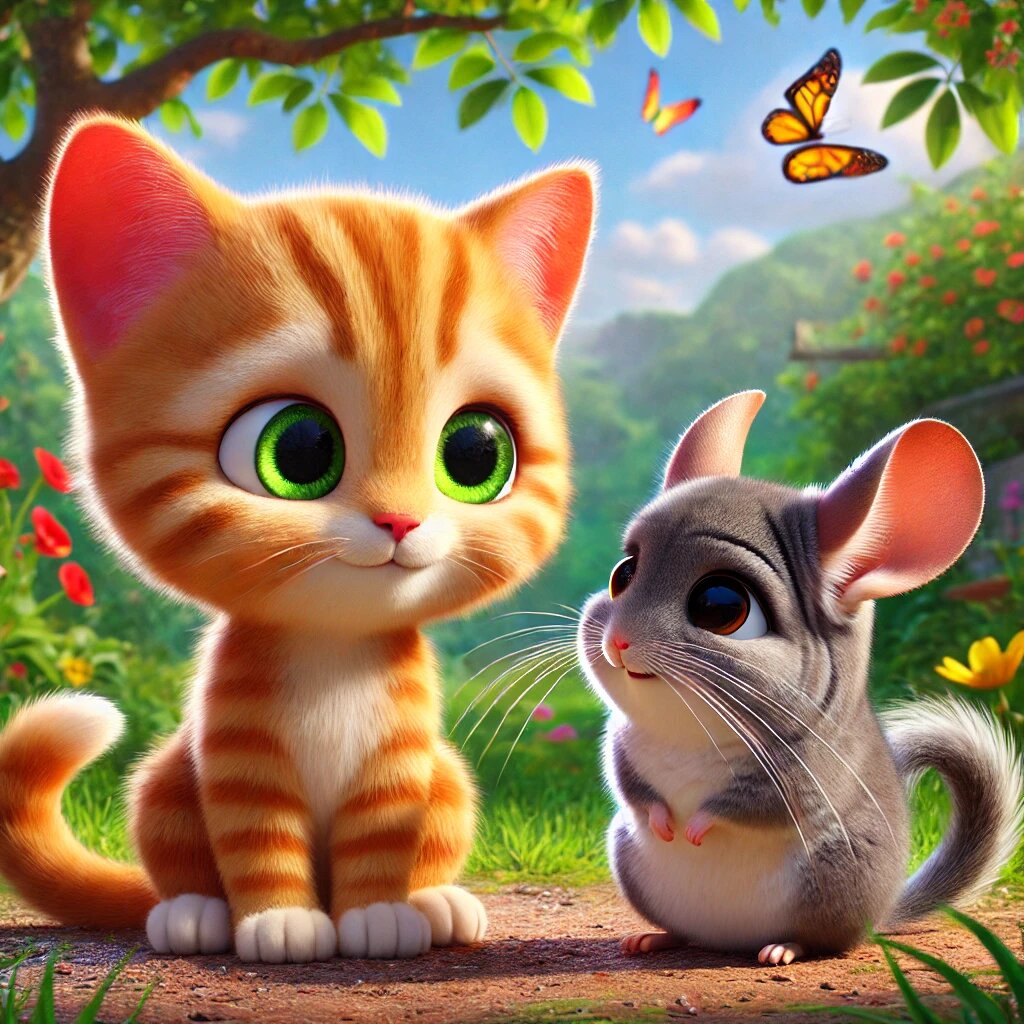 Однажды ранним утром Мур-Мяу проснулся от радостного лая Ава во дворе. Рыжий котёнок потянулся, встряхнул пушистым хвостом и выглянул из будки, где он любил дремать в хорошую погоду. Во дворе уже собрались все друзья: Дыся с любопытством озиралась по сторонам, а Пи-Пи бегал возле старого сарая, принюхиваясь к земле. — Мур-Мяу! — позвал Ав, заметив друга. — Смотри, какие странные следы мы обнаружили! На пыльной земле виднелись маленькие отпечатки лапок, похожие на кошачьи, но с длинными тонкими пальцами. При этом следы вели то в одну сторону, то неожиданно исчезали. — Как это возможно? — удивилась Дыся, коснувшись следов мягкой лапкой. — Они будто появляются и пропадают… Пи-Пи, прищурив свои хитрые глазки, исследовал каждый отпечаток. Он был самым находчивым из всех и сразу предложил: — Может, кто-то ночью пробрался на чердак? Давайте проверим там! Чердак располагался над сараем, куда вёл шаткий, скрипучий люк. Мур-Мяу и Пи-Пи взобрались первыми, Ав поднялся следом, а Дыся осторожно ст