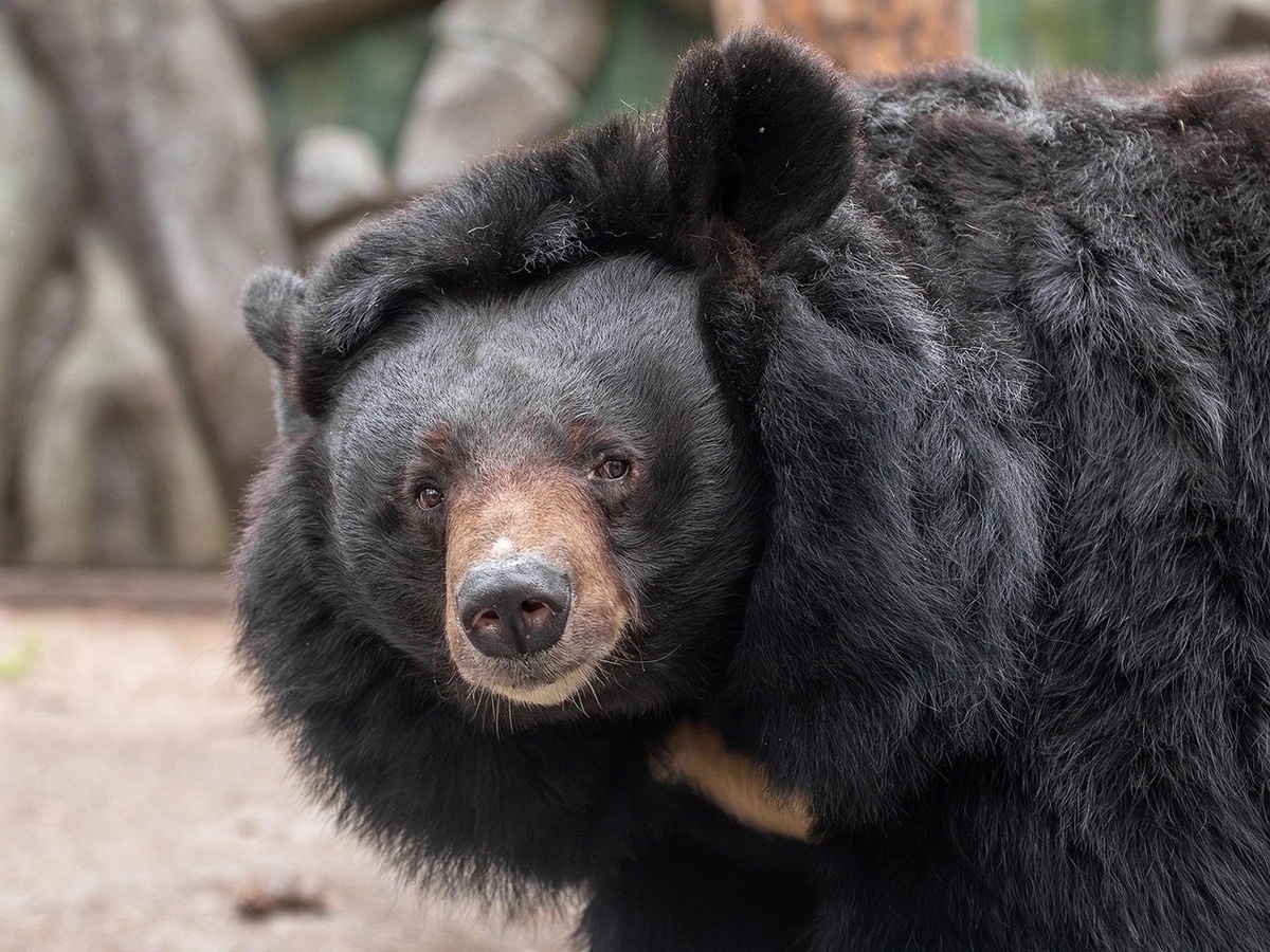 Уссурийский медведь, известный также как гималайский, белогрудый, азиатский чёрный или даже лунный (благодаря белому пятну в форме полумесяца на груди), обитает в дикой природе в Уссурийском крае, Северной Корее и северо-восточном Китае.