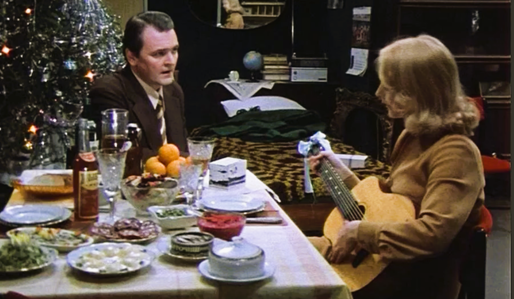 Хорошо видна в кадре плоская консервная банка с надписью "Шпроты". Сейчас на них мало кто внимания обращает, а вот в СССР баночка шрот была непременным атрибутом праздничного стола. Ели их очень просто: подцепляли рыбку вилочкой и клали на кусочек черного или белого хлебушка. Шпроты подавали прямо в баночке, а по правилам советского столового этикета консервную банку полагалось ставить на блюдце - именно так Надя и сделала, то есть, с хорошими манерами у неё порядок.
