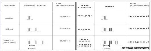 Приветствую тебя, мой читатель! Если ты сюда зашёл, значит ты владелец Toyota Prius 20 для американского рынка и у меня есть для тебя интересная информация! Кстати скажу, что информация эта довольно редкая и её не так просто найти! Итак, на автомобилях Toyota Prius есть такая приятная функция, как бесключевой доступ (не на всех комплектациях, но довольно часто встречается). Но мало кто знает, что эту функцию тоже можно программировать под свои нужды! Имеется три возможных сценария: Выбор режима отпирания замков: Находясь в салоне автомобиля и при выключенном зажигании (power OFF) нажмите кнопку закрытия замков и кнопку "паника" на пульте, и удерживайте примерно 5 секунд. Режим отпирания замков измениться между следующими: индивидуальное отпирание; отпирание водительской двери; отпирание всех дверей; Зуммер оповестит вас об изменении режима. Смотрите таблицу ниже. Пользуйтесь! Не забывайте подписываться и оценить мою работу лайком!