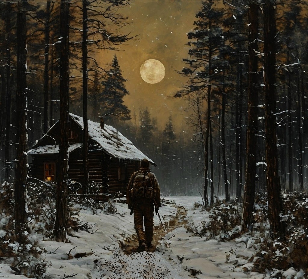 Хотя дневной свет ещё не померк, и белый снег, густо засыпавший еловые ветви, создавал сказочно-уютную атмосферу, страх коснулся сердец всех охотников. Они старались идти ближе друг к другу, не отставать на тропе, оружия были у всех на взводе…