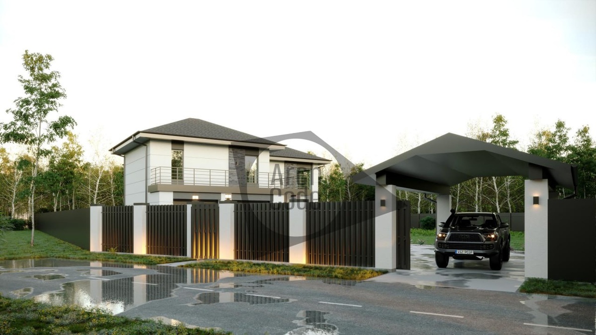Мы рады представить вам проект двухэтажного дома с гаражом — «ЛяМур» Основные характеристики: - общая площадь дома — 301,92 м² - терраса + крыльцо — 62,91 м² - количество комнат — 4 - количество санузлов — 3 - гараж — встроенный в дом. Этот проект идеально подходит для тех, кто ценит простор, комфорт и элегантный стиль. Центральным помещением дома является просторная гостиная, где вы сможете создать незабываемые моменты в уютной и стильной обстановке. Дизайн гостиной ориентирован на максимальный комфорт и удобство. А кухня в этом доме — настоящий рай для хозяйки, с большим пространством для готовки и организации семейных завтраков, обедов и ужинов. Четыре светлые спальни включают роскошную мастер-спальню с собственным санузлом и гардеробной. Также в доме предусмотрены постирочная и просторные террасы на первом и втором этажах. Проект двухэтажного дома с гаражом на два автомобиля «ЛяМур» предлагает вам изысканное пространство для жизни и отдыха. Он объединяет красоту, функциональность
