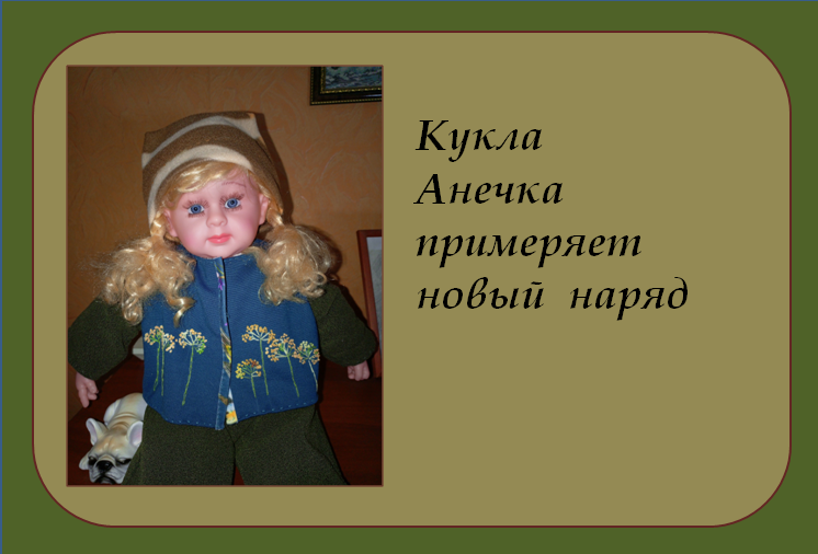 Я не знаю почему, но некоторые наряды я могу сшить за один вечер, а некоторые шью несколько дней. Вроде всегда шью с азартом и удовольствием, но работа тормозит почему-то. Понимаю, конечно, что на хрупкую Милу требуется меньше времени. Но чем меньше вещь, тем труднее работа, вроде. А для Анечки мне очень нравится что-то придумывать и воплощать это. Словно на ребенка шьешь.