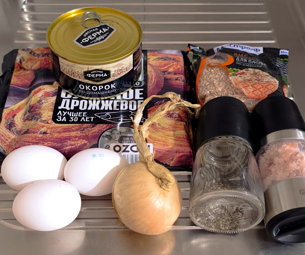 Известный кулинар Константин Ивлев рассказал, как сделать очень простой и быстрый пирог с тушенкой из слоеного теста. Попробуем повторить? Ингредиенты: - тушенка 1 стандартная банка - куриное яйцо 3 штуки + 1 штука для смазывания ( по желанию) - зелень петрушки 10 грамм ( не добавляла, мы не очень любим) - рис 100 грамм - лук 1 штука - слоеное тесто 500 грамм - соль и черный молотый перец по вкусу - кунжут 1 чайная ложка по желанию Тесто полностью разморозить. Рис сварить до готовности любым удобным вам способом. Два яйца сварить вкрутую и нарезать мелким кубиком. Зелень хорошо промыть и мелко нарезать. Я не добавляла, поэтому я этот шаг пропускаю. Лук очистить и нарезать мелким кубиком. Выложить лук и тушенку на хорошо разогретую сковороду. Обжарить в течение 5 минут на сковороде тушенку с луком. Соединить в миске все ингредиенты для начинки. Добавить специи по вкусу. Тщательно перемешать. Раскатать по ширине противня один кусок теста. Перенести раскатанный пласт в смаза