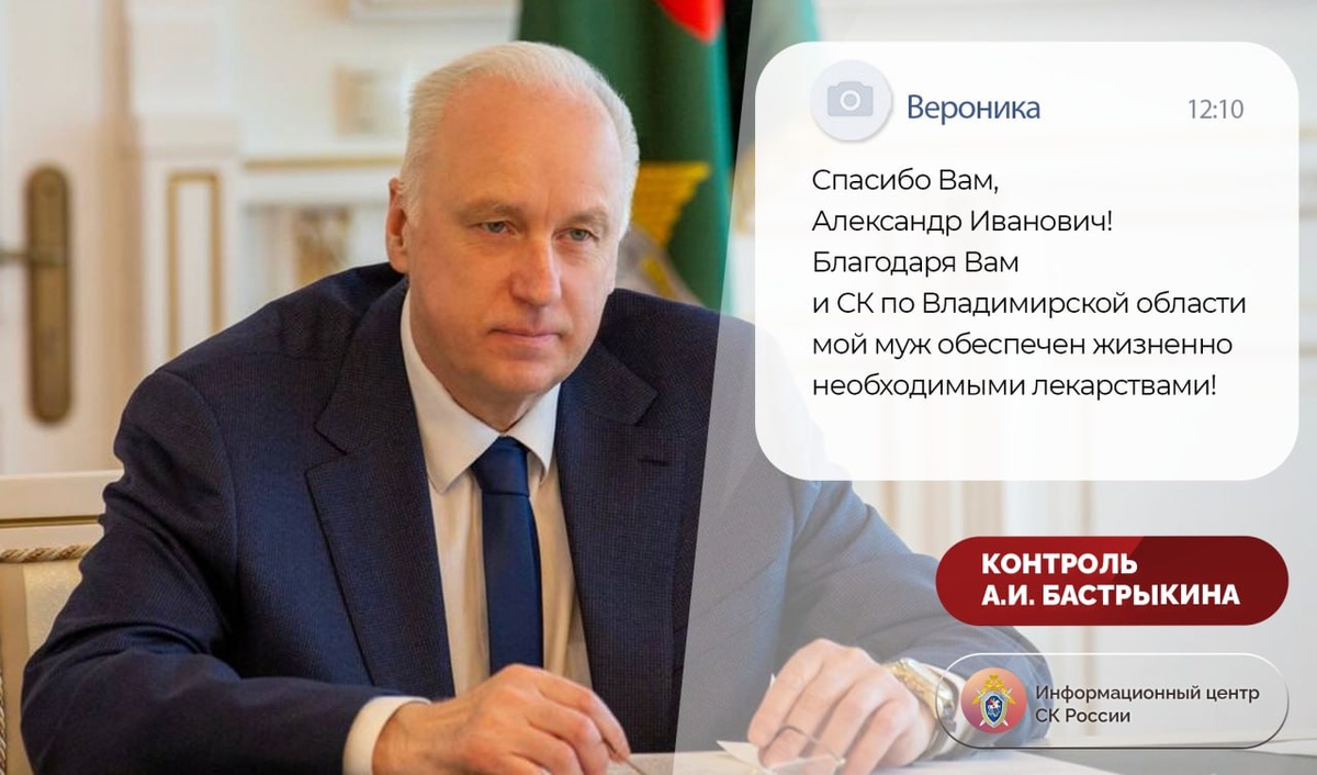 И следующее письмо, которое Вероника Терёхина отправила Председателю Следственного Комитета России было со словами благодарности: «Спасибо Вам, Александр Иванович! Благодаря Вам и СК по Владимирской области мой муж обеспечен жизненно необходимыми лекарствами!»