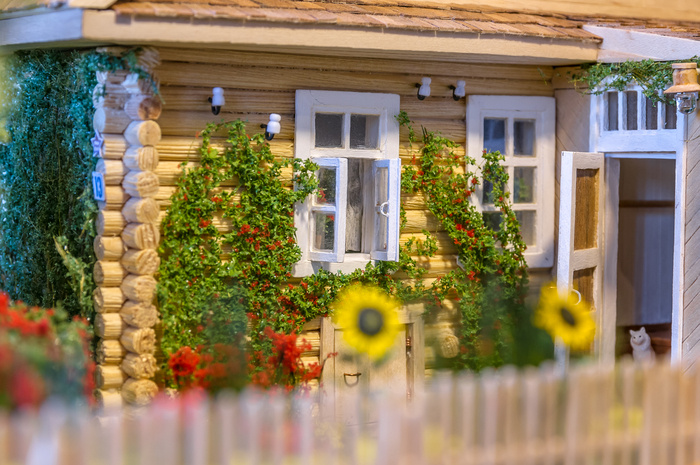 8. Окна. Окна - тоже деликатный элемент. Тем более, что принципиально решил делать их открывающимися. Сначала склеил коробки, потом вставил подвижные рамы. Из двух отбракованных палочек сделал зажим, с помощью которого удобно красить окна. Стекла вставлял в распор, подгоняя каждое по месту. Заморочисто, зато - реалистично. Дополнительно закрепил разбавленным ПВА с помощью рейсфедера. Витражные окна на крыльце застеклил внахлёст. С дверями и окнами дом начинает приобретать уже совсем узнаваемый вид! 9. Печка. Печку сделал из модельного картона.Кирпичи" продавливал шилом по линейке. Поскольку задумал делать печку "действующей" (с "огнём"-подсветкой), пришлось и все её внутренности выполнять реалистично: с шестком, сводом и дымоходом. После покраски навесил обвязку лежанки и скамейку. И вот уже можно через окошко "подсмотреть" как печка будет выглядеть в интерьере дома... и с его обитателями.: -) 10. Мебель. Этот шкаф был не просто шкаф, а ещё и перегородка, отделяющая кухню. Поэтому сраз