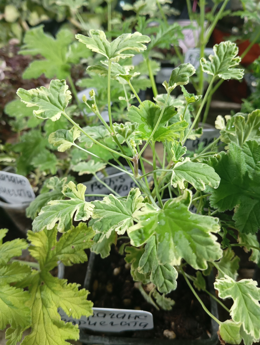 Пеларгония душистая (Pelargonium graveolens) — это популярное комнатное растение, известное своим приятным ароматом и декоративными листьями. Вот основные аспекты, касающиеся её выращивания, ухода и размножения. Выращивание: Освещение: Пеларгония предпочитает яркий солнечный свет, но следует избегать прямых солнечных лучей в самые жаркие часы, чтобы не вызвать ожоги на листьях. Оптимально размещать растение на подоконнике, где оно будет получать много света. Температура: Пеларгония лучше всего растет при температуре от 18 до 24 градусов Цельсия. Она не переносит заморозков, поэтому в холодное время года её следует держать в тепле. Почва: Растение предпочитает легкую, хорошо дренированную почву. Можно использовать универсальный грунт для комнатных растений, добавив немного перлита или песка для улучшения дренажа. Уход Полив: Полив должен быть умеренным. Пеларгония не любит переувлажнения, поэтому лучше дать верхнему слою почвы подсохнуть между поливами. В летний период полив может быт