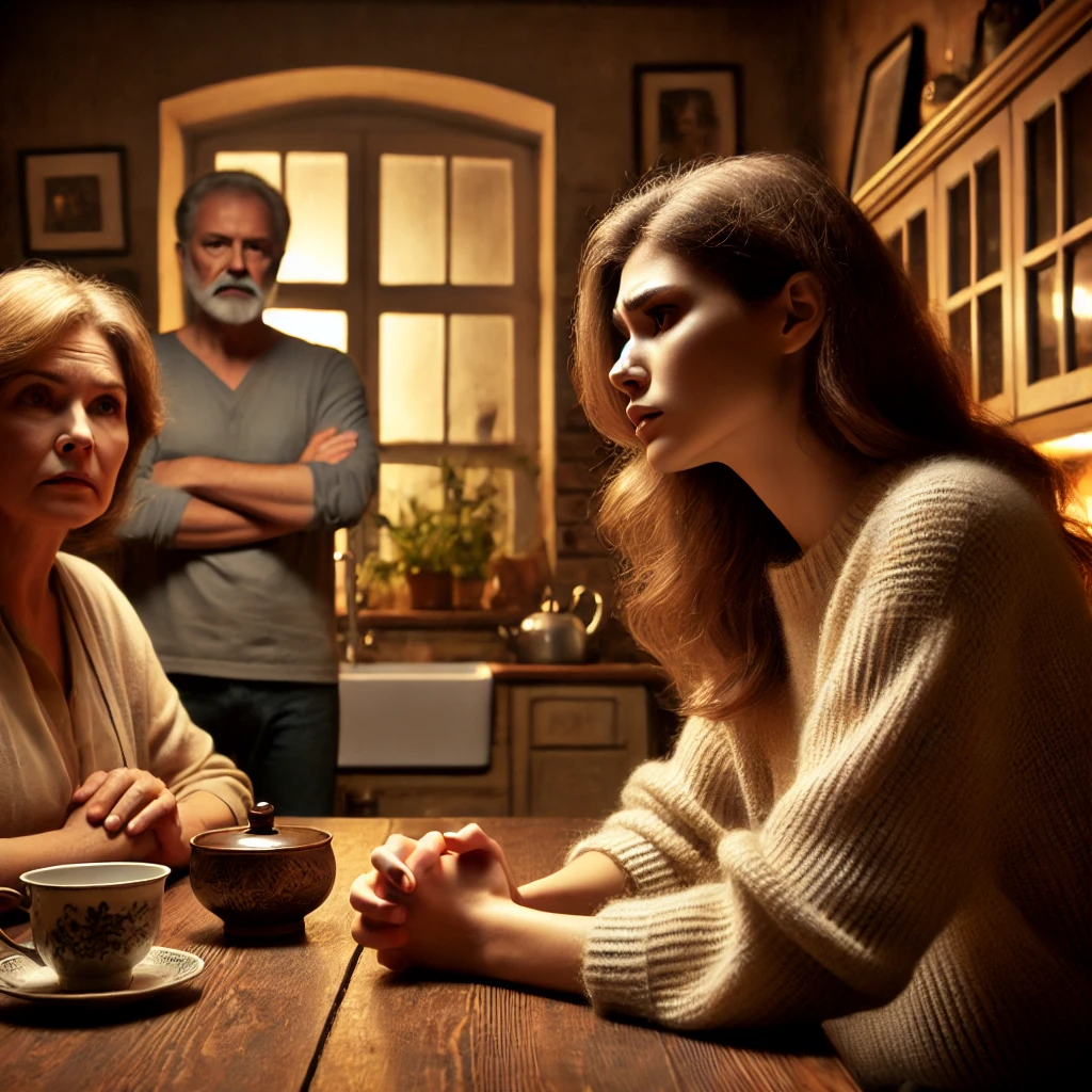 Когда она вошла, напряжение буквально висело в воздухе. Мама, стоя у окна, молчала, глядя куда-то вдаль. Отец сидел за столом, сцепив руки перед собой.