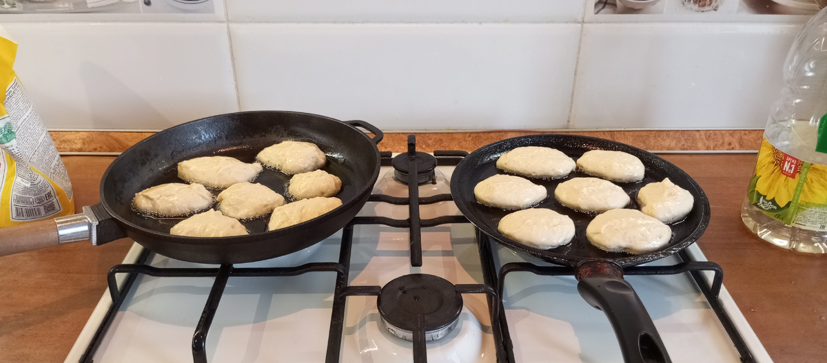 Всем доброго дня. Сегодня с утра был план по оладушкам. Просьба мужа, который соскучился по моей стряпне и вкусняшкам. Он, конечно, готовит на вахте, но это что-то масштабное: борщ на 5 дней, гречка с печенью, жаркое с тушёнкой. Времени стряпать у него нет и рядом никого кто бы постряпал😁 Поэтому с утра намешала тесто и сразу с двух сковородок метала оладушки на стол. Рецепт.... Как бы вам сказать... Называется: все на глаз😁 Беру банку сметаны большую, жирность не важна. Или ряженку 300 мл плюс/минус, или детский йогурт упаковку 250 мл Два яйца Сахар 1,5 ст.л. мы любим когда сладко, соль немного (😁говорю же на глаз) Разрыхлитель. Не соду, а в пакетиках маленьких. Я не умею и не знаю как, но соду гасят уксусом... Для меня проще 1 пакетик на такой объем и ок. Ну и мука. Сыплю пока не будет по консистенции густая сметана, 40% жирности. То есть когда вы зачерпываете ложку, а тесто прежде чем упасть ещё думает минуту: а стоит или нет. Потом даю настояться и выкладывают ложкой, смо