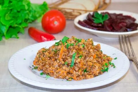 Традиционно гречка по-купечески готовится с кусочками мяса. Однако в этом рецепте используется фарш, что ускоряет процесс приготовления. Сперва фарш обжаривается с овощами, а затем томится с гречневой крупой. Получается полноценный ужин или обед.