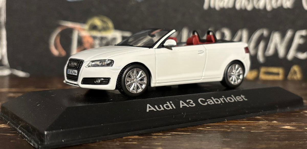 Приветствую, дорогой читатель! Сегодня у нас на обзоре редкое исполнение популярной модели. На этой платформе построено много разных машин группы VAG. Встречайте Audi A3 Cabriolet 8P от Minichamps в масштабе 1:43. Давайте рассмотрим данный аппарат, но сначала немного истории. Audi A3 начали выпускать в 1996 году на платформе VAG А4. На тот момент она делила платформу с Skoda Octavia A4. Позже на этой платформе появился VW Golf 4, Seat Leon и еще несколько моделей группы VAG. В 2003 году выходит второе поколение А3, которое называется 8P. Оно уже базируется на платформе VAG A5, которую А3 делила с VW Golf 5, Skoda Octavia A5, про которую вы можете прочитать здесь👇 Кроме этих моделей данную платформу имело еще много моделей, в этом вся фишка VAG, что на одной платформе делать разные автомобили. От прикольной Audi TT до убогого(да простят меня любители данного авто) Audi Q3. В 2004 году к трехдверному хетчбэку добавляется еще и пятидверный хетчбэк. В 2008 году модель пережила рестайлинг,