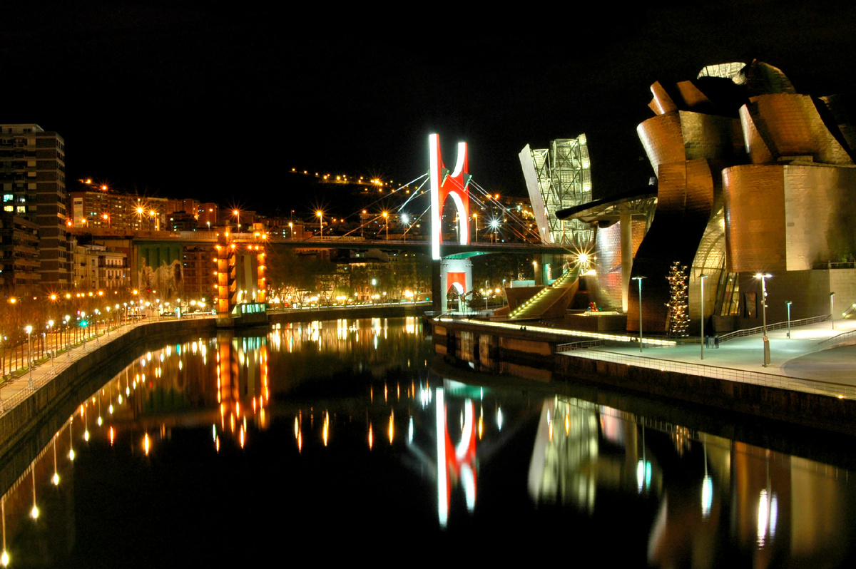 4 часа на автобусе испанской сети ALSA, и из региона Арагон я перебрался в провинцию Бискайя. В страну Басков. Кроме того, что там находится знаменитый музей Гуггенхайма, про город Бильбао я совсем ничего не знал. Представлял его обычным испанским портовым городком, в связи с чем был приятно шокирован, насколько он оказался в реальности крутым, современным, стильным и "хайтековым" городом. 🤩 Я приехал в Бильбао уже под вечер, но все равно, бросив вещи в своём модном хостеле (пожалуй, на текущий момент это самый лучший хостел среди всех, где я останавливался когда-либо 😃👍🏻), я пошел изучать окрестности, благо остановился я в самом центре. Перед сном местные жители и туристы (те, которые не ходят по ночным клубам 😏) любят прогуляться по тихой набережной вдоль реки Нервьон. Некогда это была важнейшая артерия для испанской торговли. Впрочем, и по сей день Бильбао не потерял своей значимости в качества морского и речного порта. Но всё же сейчас в черте города река носит больше ландшаф