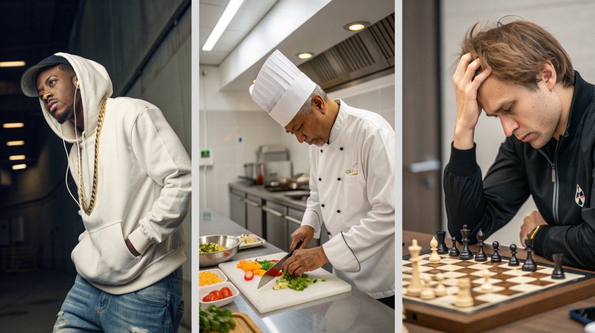 Иногда кажется, что мир разделён на тысячи профессий, увлечений и стилей жизни. Рэперы читают рифмы на улицах. Повар готовит на кухне. Шахматист обдумывает комбинации за доской. Что у них может быть общего? На первый взгляд — ничего. Но на самом деле... гораздо больше, чем вы думаете. Итак, рэпер, повар и шахматист. Звучит как начало анекдота, правда? Но давайте копнём глубже. Каждый из них — мастер своего дела. И каждый может преподать вам уроки, которые неожиданным образом отражаются в повседневной жизни. Рэпер без импровизации — это просто текстовик. Сухой и однообразный. Настоящий мастер звука умеет включаться в поток моментально. Бит сменился? Не беда. Толпа замерла? Ещё лучше. Рэпер ловит момент — здесь и сейчас. А теперь подумайте о поваре. Вы точно видели такие шоу, где человек должен за 15 минут приготовить блюдо из трёх редисок, яйца и пачки печенья. Повар тоже мастер импровизации. Ломается миксер? Он быстрее найдёт выход, чем кулинарная книга подскажет. И шахматист? На доске