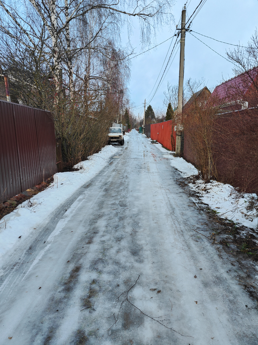 Ездили на дачу взглянуть на то, что там творится. Ехать не хотелось, потому что было понятно, что я расстроюсь от увиденного. Абсолютно аномальная нынешняя зима держит садоводов в напряжении. Дачная дорога - сплошной лёд. Не в фигуральном выражении, а в самом буквальном - реально ровный, гладкий лёд. Передвигаться пешком невозможно абсолютно. Если бы поехали не на машине, а на электричке, то полкилометра по нашей длиннючей улице мы бы точно не прошли. Пришлось бы вернуться. Снег на участке, как ни странно, стаял ещё не весь. Днём небольшой плюс, а ночью минус - это тормозит таяние. Вода в пятилитровых баклажках, оставляемых нами на всякий случай, замёрзла и не оттаивает, потому что небольшой плюс не успевает за день растопить глыбу льда. Там, где больше солнца, там и проталин больше. Деревянные борта грядок нагреваются быстрее, поэтому снег на грядках начинает таять по периметру. Получается даже красиво. Под ёлкой снега совсем нет, но это типичная картина почти для любой зимы. В
