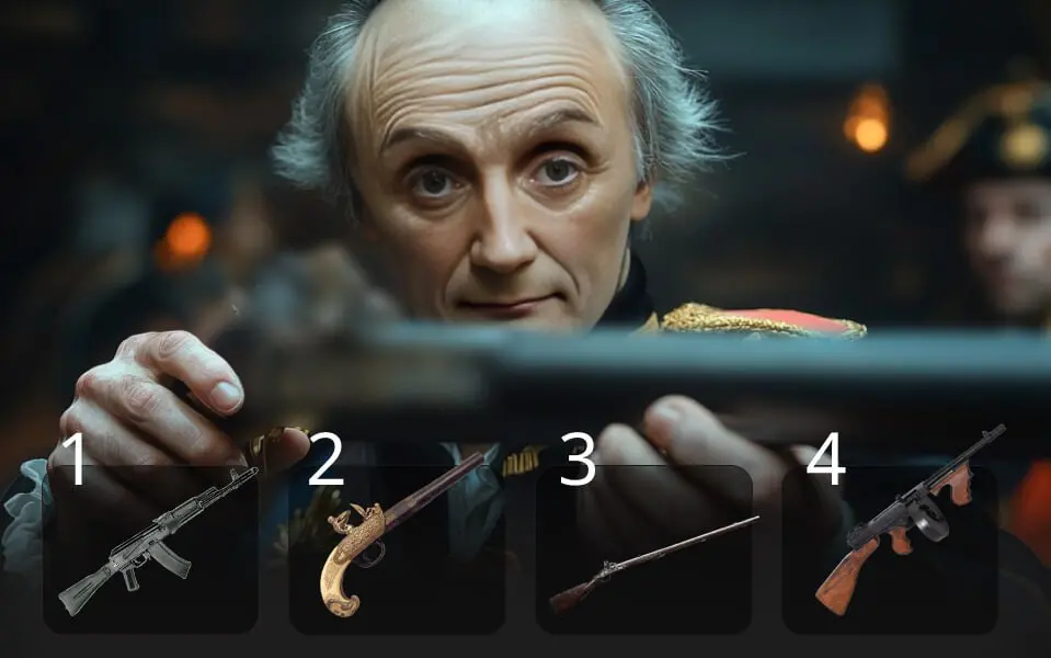 Выбирайте внимательно! Вопрос прост, но ответ требует знания военной доблести и искусства. Подумайте, кое оружие соответствует духу времени, в коем жил я. Внимательность и знания о военном деле помогут вам найти верный ответ! Пишите свои догадки в комментариях.