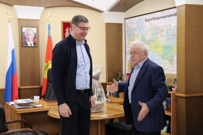 Губернатор Владимирской области Александр Авдеев поделился тёплой встречей с советским и российским актёром театра, кино и дубляжа, кинорежиссёром, сценаристом и телеведущим, народным артистом РСФСР Сергеем Никоненко. Напомним, в эти выходные наш любимый артист участвует в проекте областного Киноцентра «Владимирские киновстречи», посвящённом в 2025 году 80-летию Великой Победы. Александр Авдеев отметил, что 80-летие Победы для Сергея Никоненко тоже особенная дата. И ему есть что рассказать сегодняшней молодёжи о бедах, которые принесли нацисты, и подвигах освободителей. С этой миссией в прошлом году Сергей Никоненко провёл встречи с жителями 70 городов России, выступал перед защитниками Родины на передовой. И убеждён, что с такой силой духа, как у наших ребят, победный 1945-й обязательно повторится. Алксандр Авдеев, Сергей Никоненко. Фото со странички губернатора «ВКонтакте» Часть творческой встречи актёра посвящена поэту и писателю Сергею Есенину, роль которого он сыграл в 1971 году.