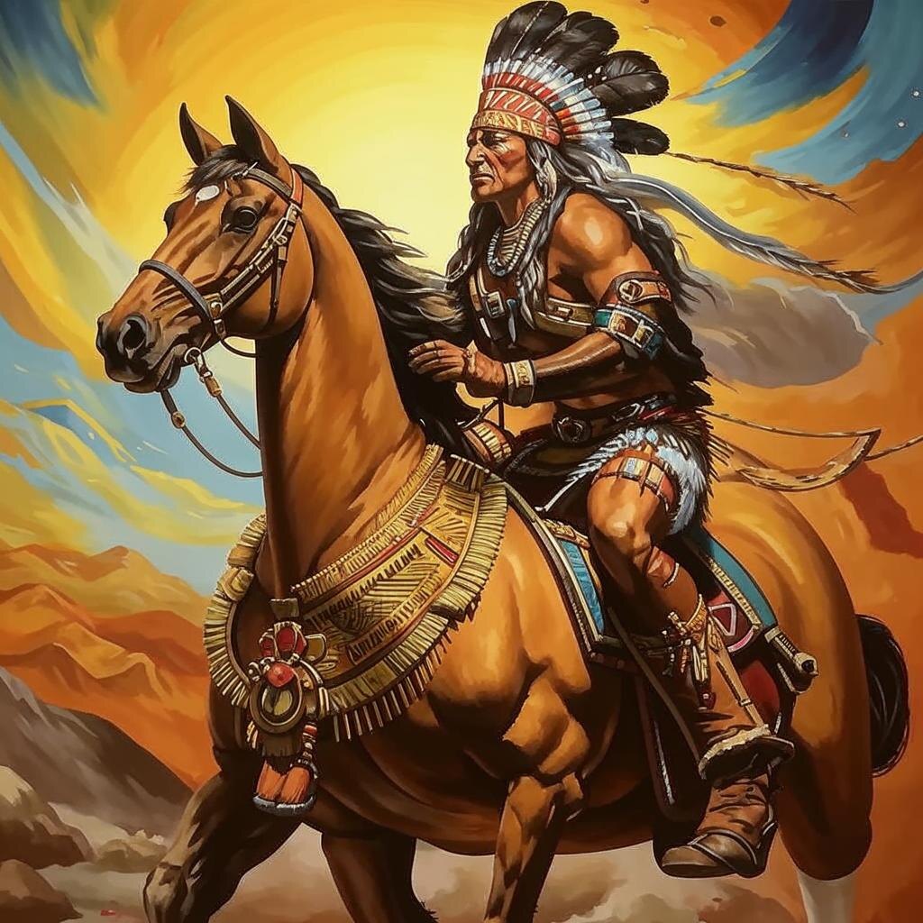 В то лето, когда племена у четырёх ручьёв праздновали третью совместную весну, охотники стали замечать удивительное создание в дальних прериях – кобылу с шерстью цвета летнего солнца. Она появлялась и исчезала как призрак, и никто не мог к ней приблизиться. Старики говорили, что эта кобыла – дочь самого Солнца, и что её появление – важный знак. Молодые воины пытались поймать её, но она была быстрее ветра и мудрее старой лисы. Даже лучшие следопыты обоих племён возвращались ни с чем. Быстрый Пёс долго наблюдал за попытками поймать золотую кобылу и однажды ночью, когда полная луна освещала прерию серебряным светом, он услышал тихое ржание. Выйдя из своего вигвама, он увидел серебряного медведя, который словно звал его за собой. Следуя за медведем, Быстрый Пёс пришёл к небольшому озеру, скрытому в зарослях высокой травы. Там, у самой воды, стояла она – золотая кобыла. Её шерсть мерцала в лунном свете, а глаза были полны древней мудрости. Быстрый Пёс не стал к ней приближаться. Вместо это