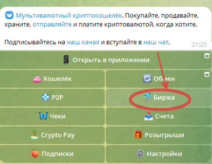 Проверено на себе Заходим в CryptoBot тык . Заходить и покупать можно как с телефона, так и с компьютера. Запускаем. Переходим на биржу, там продаются и покупаются много токенов из сети ТОН , также появилась возможность торговать солановскими монетами. Для покупки нам понадобится USDT , это стейблкоин , который привязан к курсу американского доллара $. Купить можно здесь же в боте. Через P2P. Почитать можно здесь , только вместо Тона выбрать USDT. : Как и где купить TON Coin. Без верификации (KYC)2025 год Если вкратце то переходим на кнопку P2P , находим кто продает usdt по устрающеваму нас курсу , создаем сделку, переводим продавцу деньги на карту, а он вам , после подтверждения оплаты ваши usdt. На время сделки монеты замораживаются в боте. Бот выступает гарантом сделки. Важно не переходить в личные сообщения с продавцом и не проходить доп верификации и тд. Вобщем мошенники есть везде. Следуйте правилам платформы. Вобщем у вас должно быть какое то количество usdt , сумма отображает