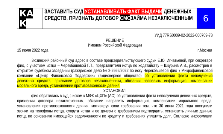 КАК ЗАСТАВИТЬ СУД УСТАНАВЛИВАТЬ ФАКТ ВЫДАЧИ ДЕНЕЖНЫХ СРЕДСТВ, ПРИЗНАТЬ ДОГОВОР СМСЗАЙМА НЕЗАКЛЮЧЁННЫМ