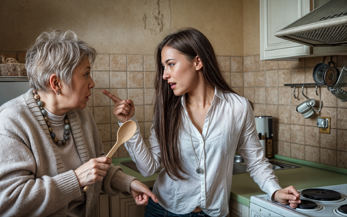 — А, Мариночка! - радостно воскликнула Валентина Петровна. - А я тут решила вам помочь с организацией пространства. У тебя все неправильно расставлено. Сковородки должны быть ближе к плите, а не в дальнем шкафу. И почему специи разбросаны по разным полкам?