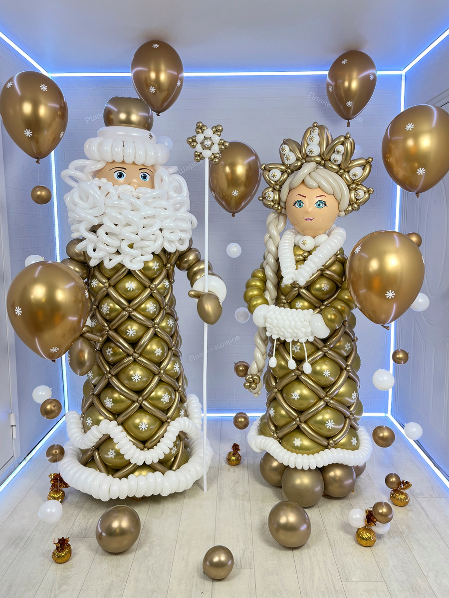 Дед Мороз и Снегурочка – символы Нового года, олицетворяющие волшебство и радость праздника. В этот чудесный период люди стремятся создать в доме атмосферу сказки и уюта. Одним из наиболее оригинальных способов украсить новогоднее торжество являются ростовые фигурки, выполненные из воздушных шаров. Эти яркие и эффектные композиции способны привлечь внимание гостей и подарить всем незабываемые эмоции. Воздушные шары стали неотъемлемой частью новогодних композиций благодаря своей яркости и разнообразию форм. Одной из главных особенностей является возможность создавать различные фигуры, в том числе Снегурочки и Деда Мороза, которые идеально вписываются в праздничную атмосферу. Шары доступны в различных цветах, включая традиционные расцветки: красный, зеленый и золотой, что позволяет легко подбирать палитру под любой интерьер. Кроме того, фигурки Деда Мороза и Снегурочки из воздушных шаров можно комбинировать с другими элементами декора – гирлянды и снежинки, создавая уникальные композици