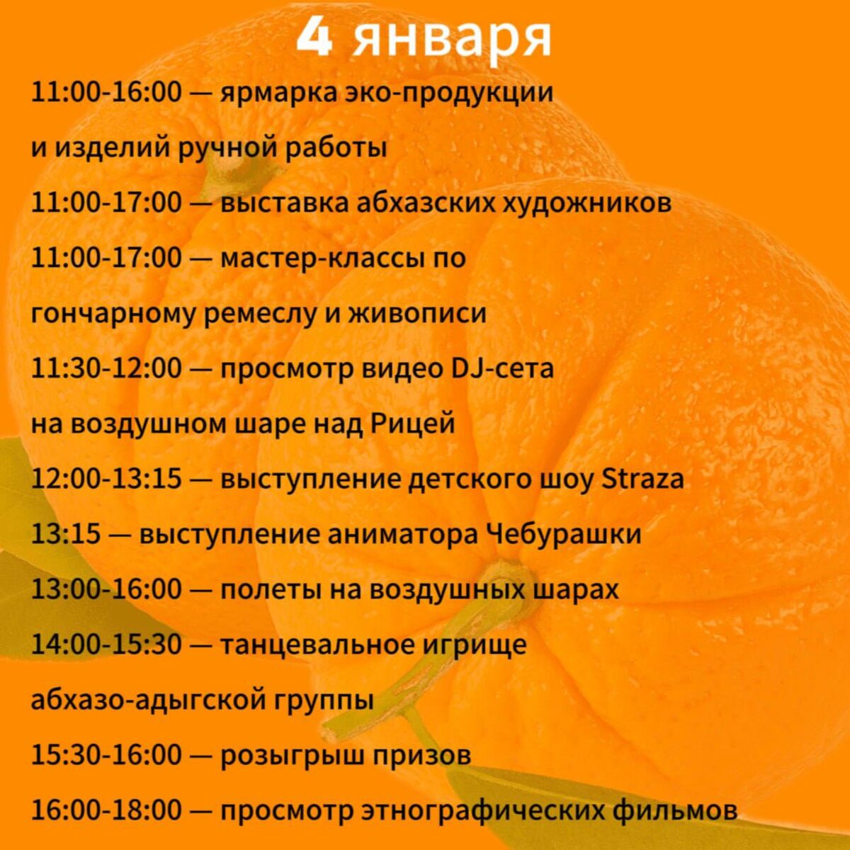 Фестиваль "Мандарин" проходил 3 дня в этнопарке "Апсны" с 3 по 5 января, а 6-8 января продолжался в Сухуме на пляже Марнеро. Хотели поехать в парк ещё на первый день, но в итоге попали только на 2-й. А в Сухуме мы на фестиваль не попали совсем, т.к. на 6-е была уже давно запланирована экскурсия, а 7-го уезжали. Зато мандариновой ёлкой полюбовались неоднократно.