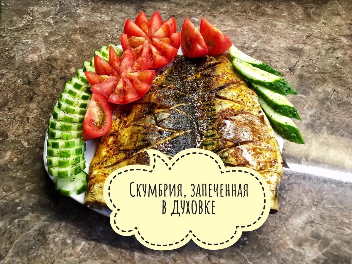🐟🍽 Быстрый ужин. 👩🏻🍳 Скумбрию помыть, выпотрошить, срезать плавники. Распластать рыбу, освободив от костей. Получается филейная часть, на которой делаем надрезы, далее солим, перчим и молотой паприкой посыпаем с двух сторон. Запекаем филе 25 минут в разогретой заранее духовке при 180° до готовности. Нарезаем помидорчики-огурчики. Украшаем. Приятного всем!!