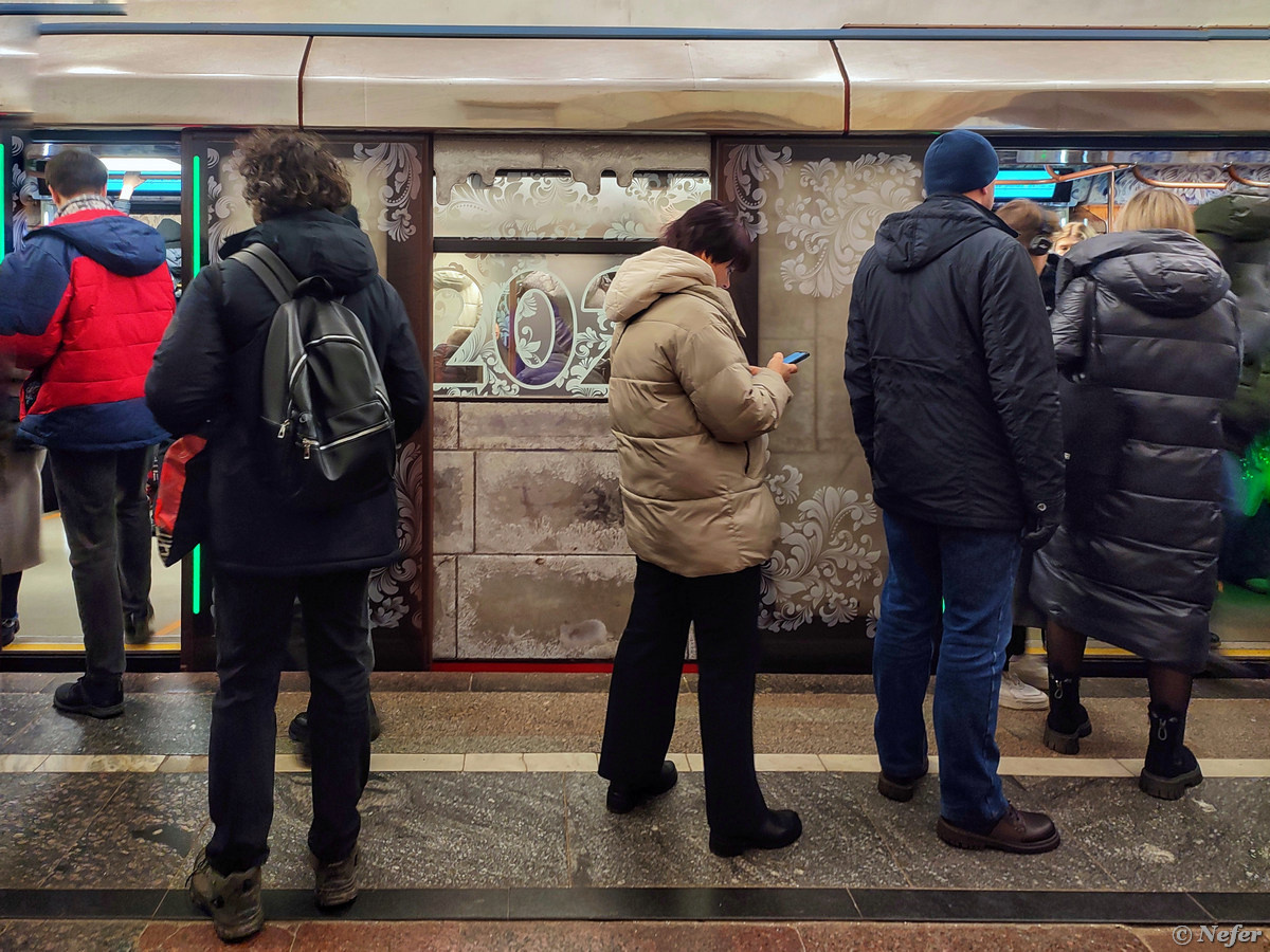 Московское метро: новогодние поезда и зимний, будто обледеневший состав