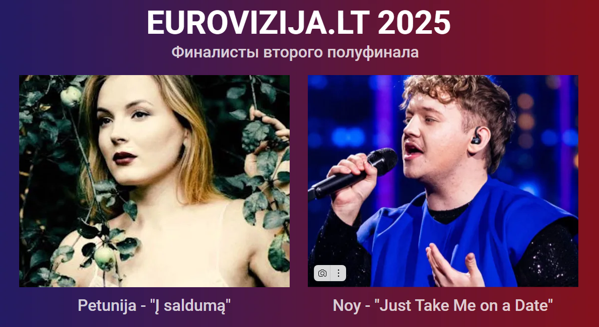 Petunija и Noy стали вторыми финалистами национального отбора Литвы - EUROVIZIJA.LT 2025 на Евровидение 2025. Второй полуфинал транслировался вещателем LRT 18 января в формате записи.