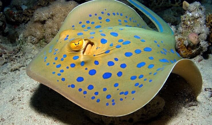 В итоге разность потенциалов на концах электрических органов может достигать внушительных 1200 вольт. В импульсе же мощность разряда может составлять вообще от 1 до 6 киловатт. При этом рыба варьирует частоту электрических импульсов в зависимости от назначения. Например, скаты могут генерировать 10-12 импульсов во время защиты, а при атаке их число возрастает до 14-562. Мощность разряда же у разных рыб тоже колеблется от 20 до 600 вольт. Из морских рыб самый сильный орган у мраморного электрического ската Torpedo marmorata. Эта рыба генерирует разряд более 200 вольт. А электричество является для этого существа как защитой от акул и осьминогов, так и инструментом охоты на мелких рыб.