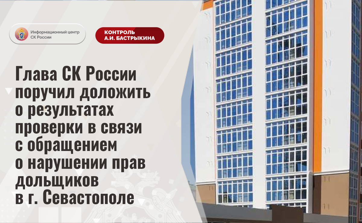 Глава СК России поручил доложить о результатах проверки в связи с обращением о нарушении прав дольщиков в г. Севастополе