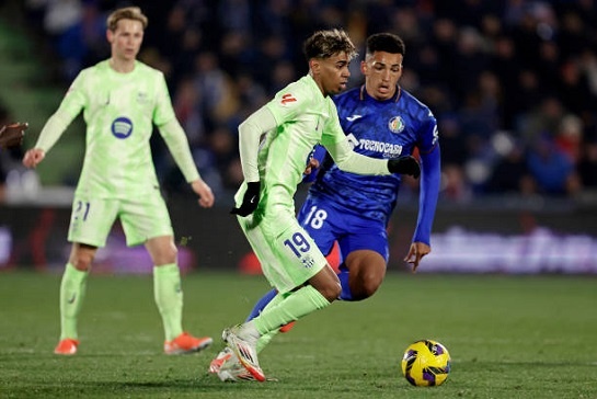 Ненасытившись, Кунде всякий раз продолжал выходить на острие атаки "сине-гранатовых". После розыгрыша углового накоротке Педри с левого полуфланга прицельно навесил на линию вратарской, куда не поспел правый защитник "Барсы"... Следом Рафинья со стандарта закручивал мяч именно в направлении Кунде, дублю которого не позволили состояться оборонцы "синих". К середине первого тайма "Барселона" владела мячом свыше 80% игрового времени. Такие цифры не должны были вводить в заблуждение, ведь "Хетафе" на днях в Кубке Испании контролировал мяч лишь 17% против куда более скромного соперника. Тем не менее, не было похоже, что у команды Бордаласа был план Б. Удерживать 0:1 в надежде, что однажды сфера как-нибудь залетит в ворота Пеньи? В редких подходах мадридцев ярче других себя проявлял Коба. Вообще, хозяева нередко сдваивали левое крыло нападения, куда охотно смещался Уче. Коба взял игру на себя и выпалил из пределов штрафной "Барсы", угодив в Кунде. Впоследствии Ямаль от ближней бровки вырезал заброс на Гави, после сброса которого Кунде своевременно выполнил кросс на Рафинью. Бразилец взмыл в воздух и пробил из убойной позиции в сетку ворот Сории с внешней стороны! Пресловутое "Не забиваешь ты..." сработало в пригороде испанской столицы, поскольку первый же опасный момент у ворот каталонцев завершился голом. Аленья подхватил бесхозный мяч слева и сыграл на Милью, подачу которого заблокировал Гави, после чего Аленья перевёл мяч налево на Кобу, который положил корпус и классно пробил слёту. Пенья сложился и отбил мяч перед собой, и Арамбарри дослал игровой снаряд в сетку - 1:1! После возобновления встречи "Барселона" большим числом устремилась к воротам Сории. Ямаль неточно пробил рабоной, а перед уходом в раздевалку ни Кунде, ни Араухо не смогли подправить мяч в створ после то ли удара, то ли скидки Левандовского.