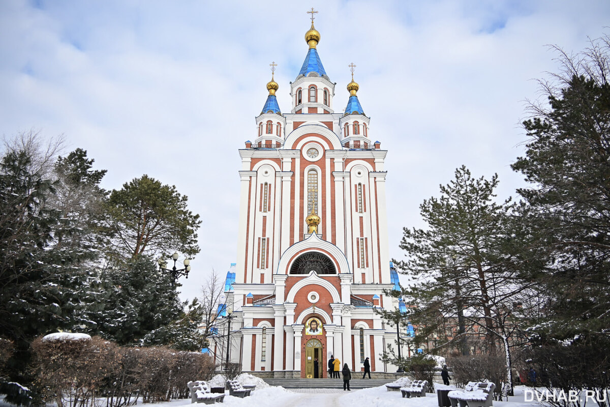 Святочная экскурсия, которую проводила профессиональный гид «Пилигрим-khv» Анастасия Соболева, началась от Соборной площади, где сегодня расположен Градо-Хабаровский Успенский собор. Однако в начале ХХ века на этом месте находилась совсем другая церковь, при этом люди молились той же иконе, что и сегодня.