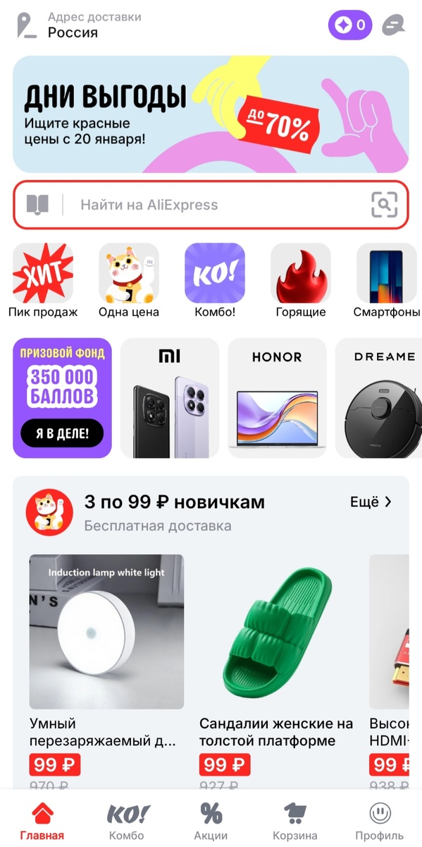 Многие до сих пор не умеют заказывать с АлиЭкспресс, думая, что это сложно и не хотят связываться с "заграницей" и по прежнему заказывают на Российских маркетплейсах, хотя понимают, что там продавцы зачастую заказывают именно с АлиЭкспресс, накручивают стоимость и перепродают вам. Ниже мы расскажем и покажем по шагам как просто зарегистрироваться на АлиЭкспрес самостоятельно и делать покупки экономя свои деньги, получая огромный ассортимент товаров. Вконце статьи расскажем как и на АлиЭкспресс получить максимальную выгоду с помощью акций и промокодов. Забегу вперёд и скажу, что это проще простого и справится любой пользователь мобильного телефона. Поехали: Шаг #1 Скачиваем приложение AliExpess с Google Play или App Store или AppGalery или Ru Store (в зависимости какой магазин приложений установлен в вашем мобильном устройстве. Это бесплатно. Шаг #2 Снизу в правом углу выбираем пункт "профиль". Шаг #3 Нажимаем кнопку "войти" и попадаем на страницу регистрации. Шаг #4 Тут выбирае
