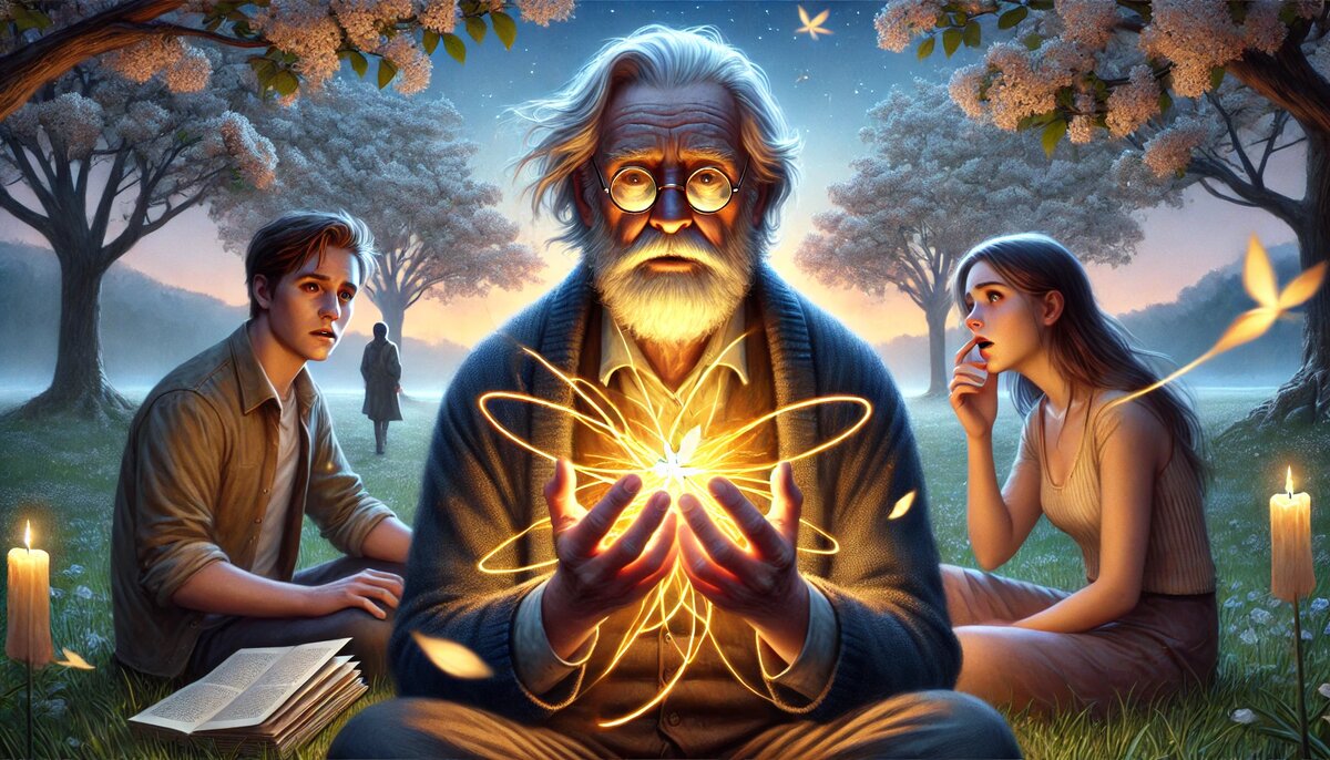 Поздний весенний вечер. В университетском парке группа студентов собралась вокруг Александра Ивановича, профессора философии. На траве разложены книги, записи и наброски. Алексей, студент-этнограф, держит в руках книгу с иллюстрацией древнегреческой Мойры. София и Анна, студентки нейробиологии, обсуждают что-то вполголоса, время от времени поглядывая на профессора. Андрей, скептик и любитель научного подхода, слегка насмешливо наблюдает за всеми. Александр Иванович (глядя на книгу в руках Алексея):