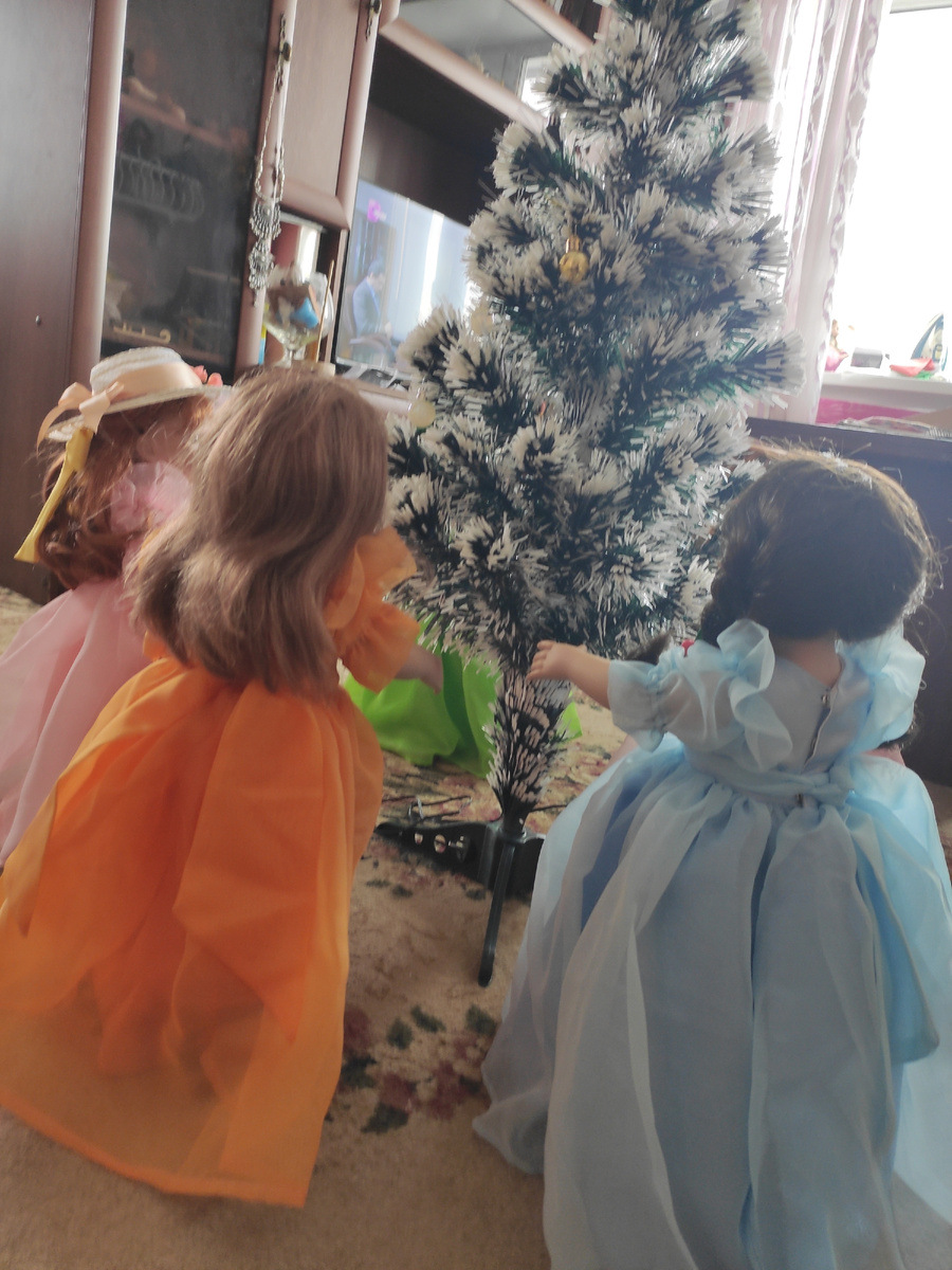 Хоть и с опозданием , но Катюшки тоже попросились под ёлочку . Не могла я им отказать , такие маленькие капризульки, весь праздник просидели взаперти , а тут стала убирать ёлочку и мои малышки прибежали, встали в круг и запели песенку про ёлочку , ну вы догадались какую.... Да, ту самую, которая в лесу родилась и росла А ещё им очень хотелось показать бальные платья, которые сшила им Лина, вы наверное помните: А ещё каждый захотел сфоткаться по отдельности . Встречайте нас: А потом одна из Катюш помогла мне снимать с ёлочки игрушки А куда складывать шарики? Ну вот, бальными нарядами похвастались и хотим поздравить вас с праздником Крещения . Будьте здоровы , счастливы и живите долго и богато. Так что мы тоже можем улыбаться . Пока пока.