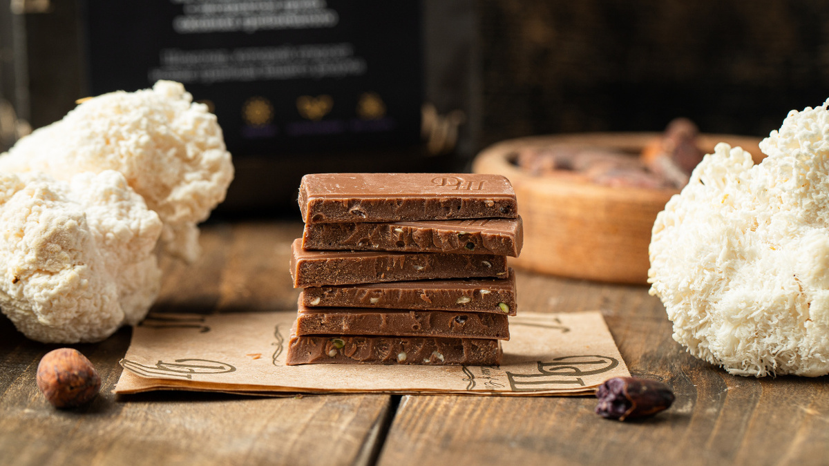 Одним из уникальных продуктов компании является умный шоколад с экстрактом гриба ежовика гребенчатого. Он называется «Ускоритель мозга».