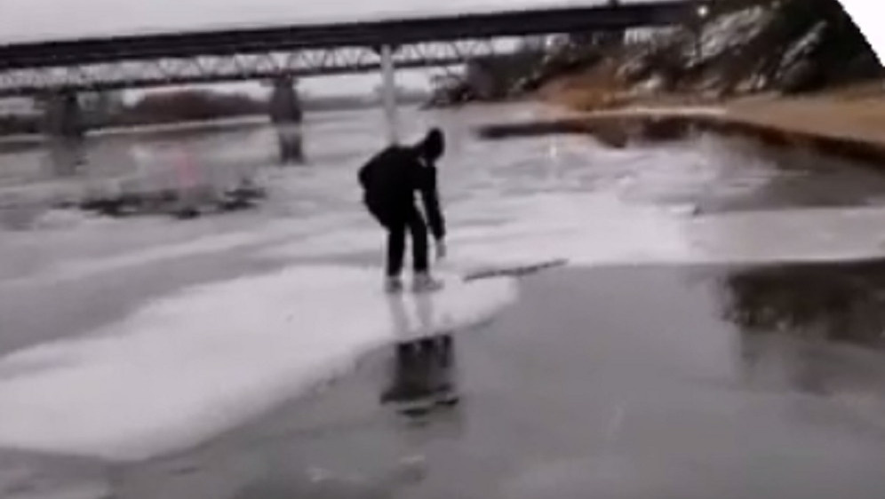 Опубликовано видео, как парень пытался покататься на льдине и сорвался в воду