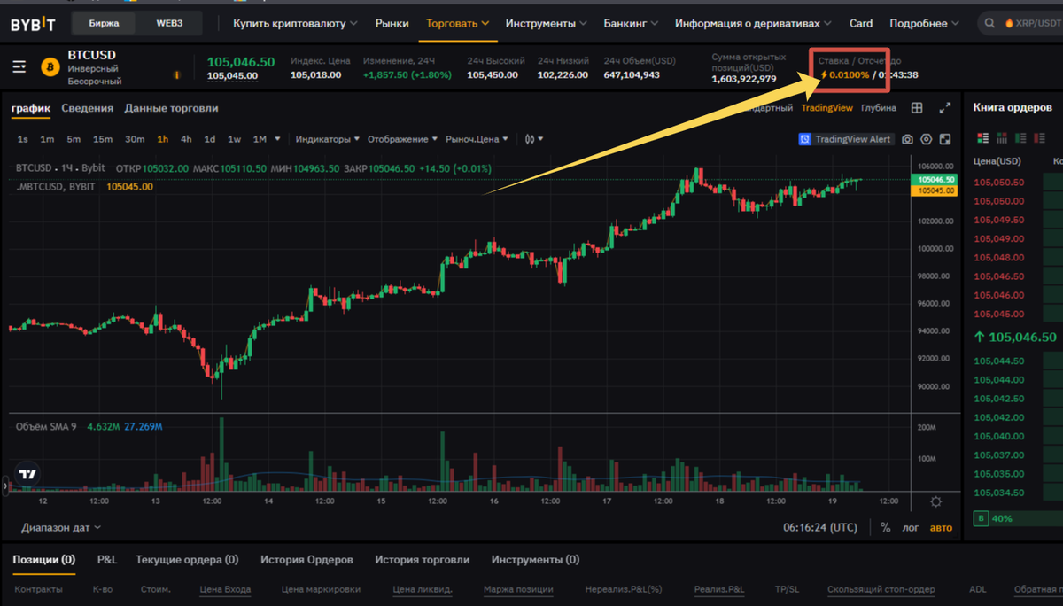 - Ставка фандинга положительная: 0.01% каждые 8 часов.