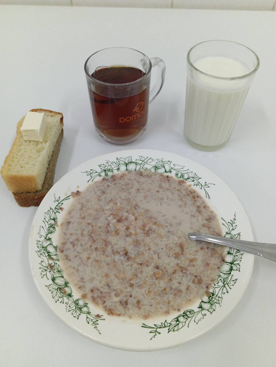 Приветики) Ночь спала плохо.. Соседка пол-ночи шуршала пакетами, ела, ворочалась, чесалась, я из-за этого часто просыпалась... Но сначала про вчерашнюю еду) У меня на завтрак была гречка и хлеб с маслом. Похоже - это стандартный завтрак тут, гречка вкусная, масло тоже, я в кашу кинула. Хотя, вряд ли это масло конечно.. Обед.. Вспомнила, что у меня же хлебцы с собой взяты, свой хлеб соседке отдала, она ночью голодает.. По меню на обед должна была быть котлета - не дали, опять сосиску подложили( Меню в папку засунуто, всегда нечетко фотографируется... Кашу с сосиской забрала в палату, вечером съела. Супа много налили, я им на обеде наелась... На ужин ждала омлет... Думаю - ну испортить омлет это невозможно... Оказалось - возможно) 😁 Омлет видите? Вот и я не вижу... Перловка ужасно невкусно сварена, безвкусная, пару ложек только смогла съесть.. Отужинала яйцом) С мясом тут плохо, только на бумажке оно и есть... Про соседку... Ну так то это треш какой-то... Первое и основное - на ли