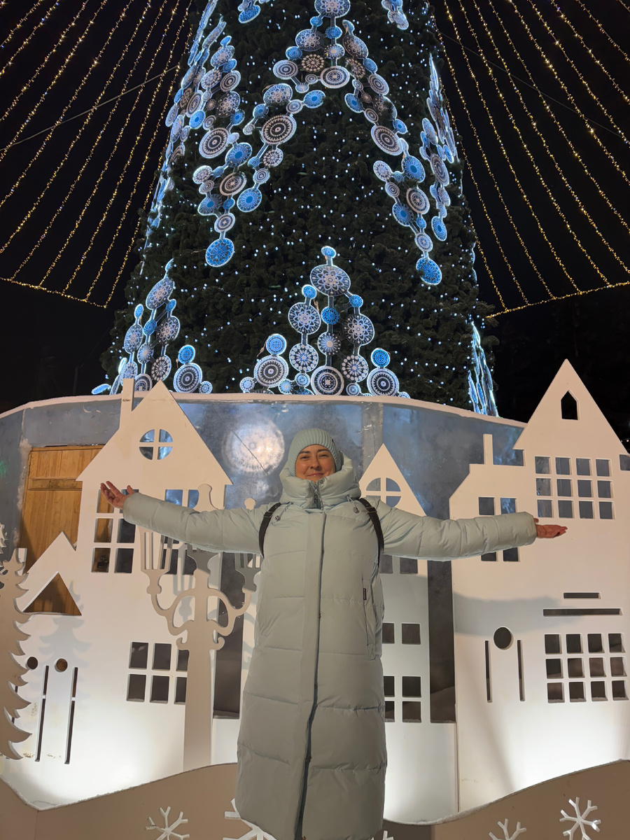 Вчера ездила в Челябинск, ходили с подругой в Драмтеатр (об этом напишу позже). И уже после спектакля, решили прогуляться по ледовому городку на Площади Революции. Не была я еще в этом году... Хотелось посмотреть, что сотворили :-) Два предыдущих года городки на площади были совсем печальными... Одно разочарование. А тут еще и погода располагала. Снег повалил. Такими мягкими большими хлопьями, погода просто какая-то невероятно зимне-новогодняя была. Ну как не погулять под таким снегом? Сначала покажу немного путь от Драмтеатра до площади. Но там всегда все очень красиво делают к Новому году. Шарики - фонарики, иллюминация, арт-объекты с подсветкой. Сквер в целом красивый, а в новогоднем оформлении последние годы он становится просто сказочным. А вдалеке уже виднеется площадь с ледовым городком. Очень яркая в этом году, хорошо подсвеченная. Правда погода у нас совсем нетипичная. Из-за оттепели даже закрывали городок на какое-то время. Все сильно таяло. И это на Урале... В Челябинской о