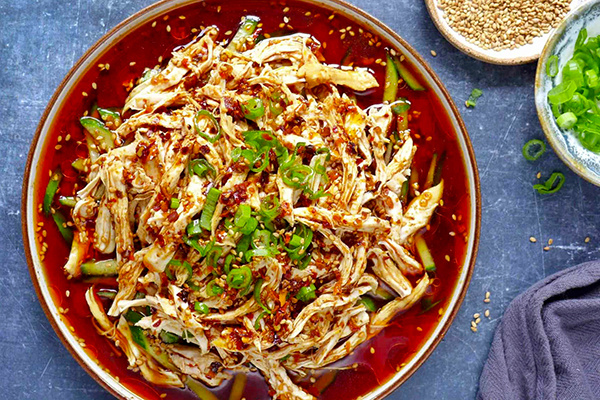 Курица Бан Бан — это одно из самых известных блюд сычуаньской кухни, которое покоряет своим сочетанием нежности, остроты и легкой ореховой нотки. Его название связано с традиционным методом приготовления: курицу отбивают деревянной палкой, чтобы придать ей особую текстуру. Это блюдо идеально подходит для летних обедов или ужинов, так как подается холодным. Оно станет отличным дополнением к многоблюдному китайскому застолью или даже простому семейному ужину. Готовить его легко, а результат впечатляет — сочный цыпленок, хрустящие овощи и насыщенный соус с характерным сычуаньским вкусом. Почему стоит попробовать? соус 1. Варка курицы Совет: Если готовите больше курицы, увеличьте время варки. Температура в центре филе должна быть не менее 74°C. 2. Подготовка курицы 3. Приготовление соуса 4. Сборка блюда Вопрос: Чем заменить сычуаньский перец?