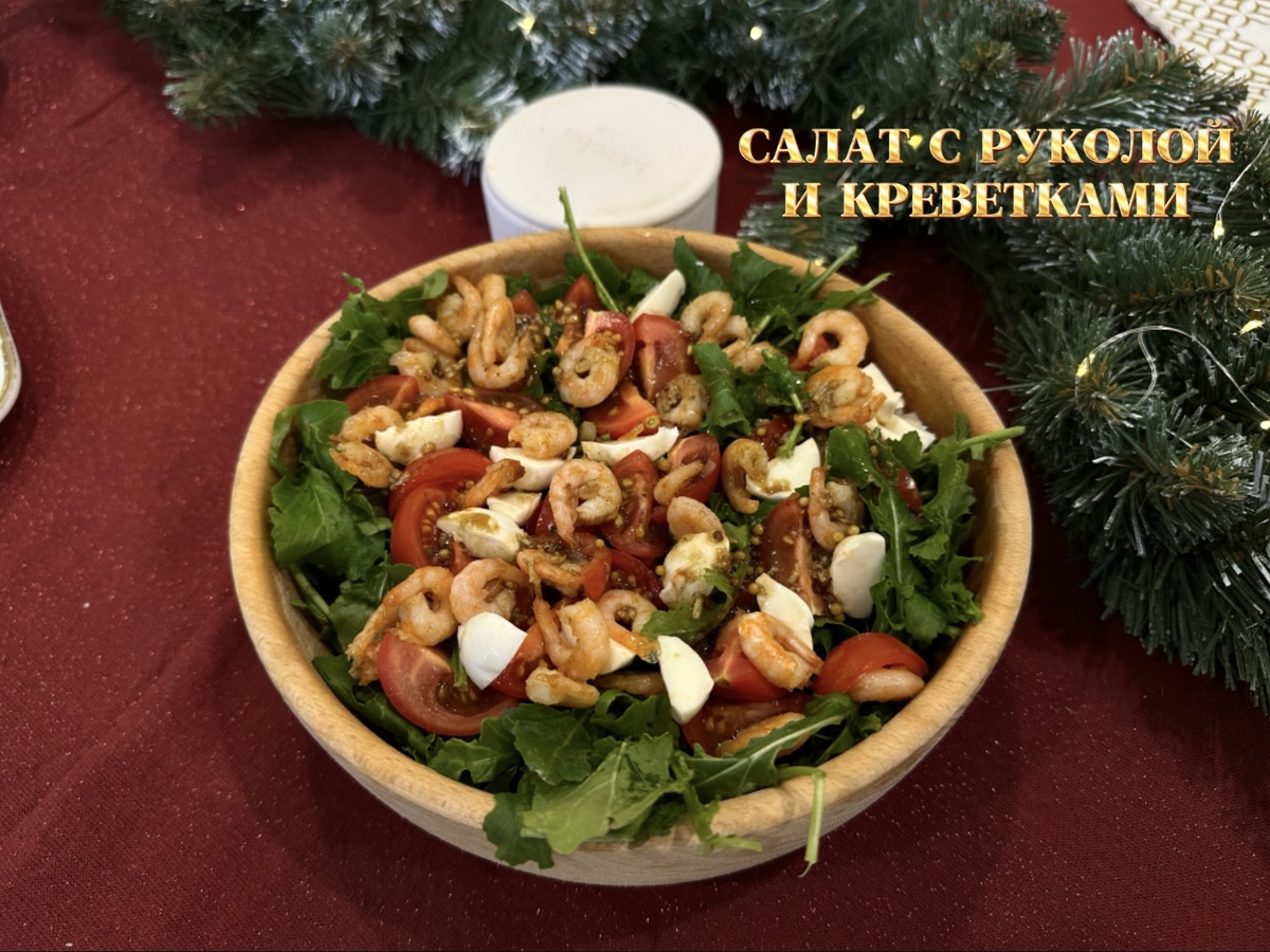 - чищенные креветки обжариваем на сливочном масле с чесноком и добавляем в салат.