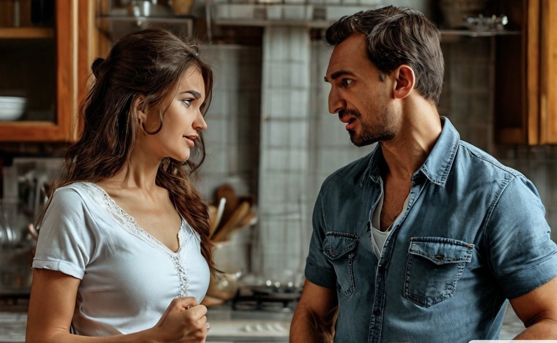 Андрей присел на край стола, попытался взять жену за руку, но она отстранилась. В его глазах читалась смесь разочарования и настойчивости.