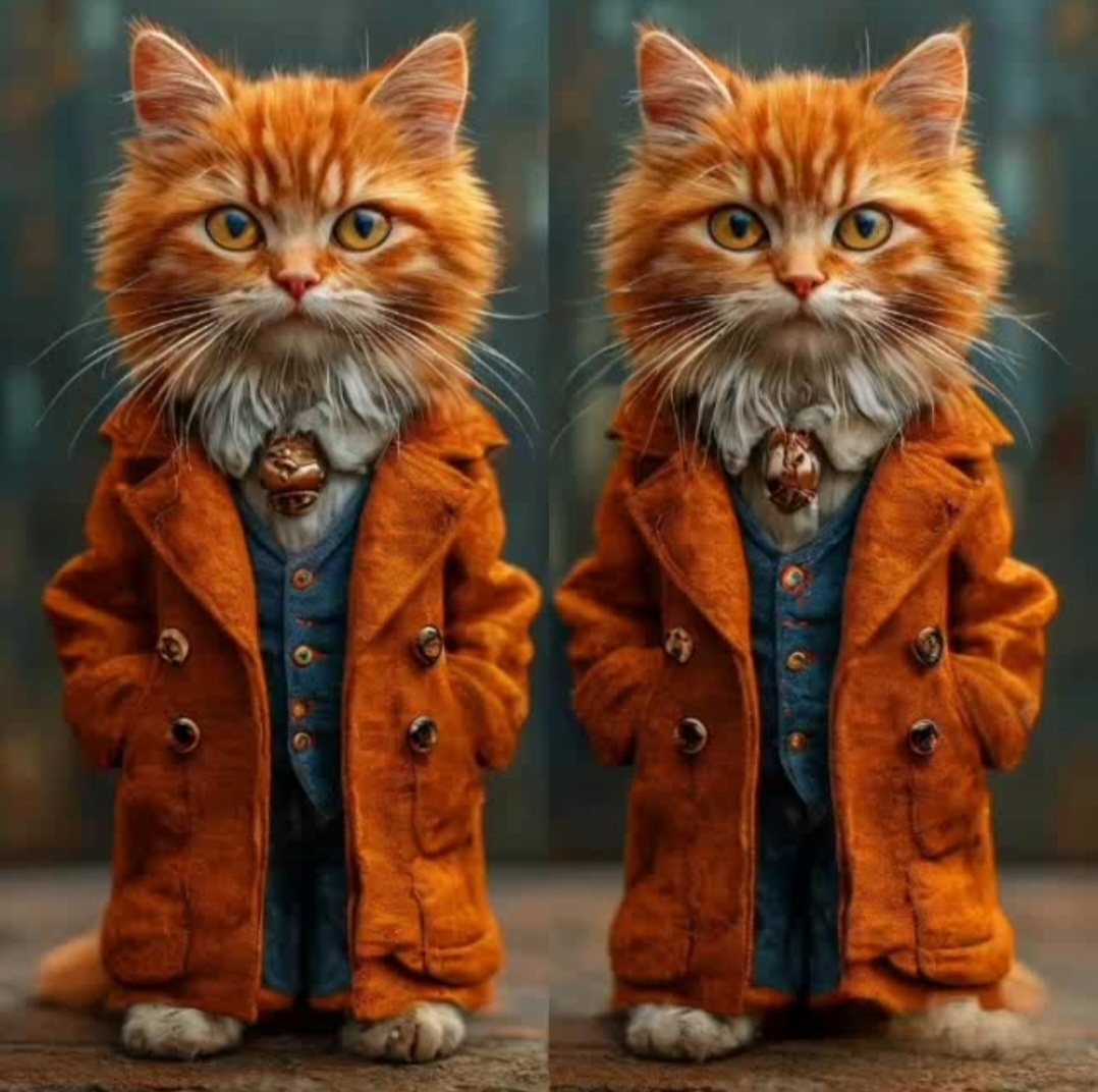 Привет, я модный котик Огняш, специально для тебя, одел одежду, которая отличается мелкими деталями, сможешь найти 8 отличий? Мур-мур, люблю тебя!
