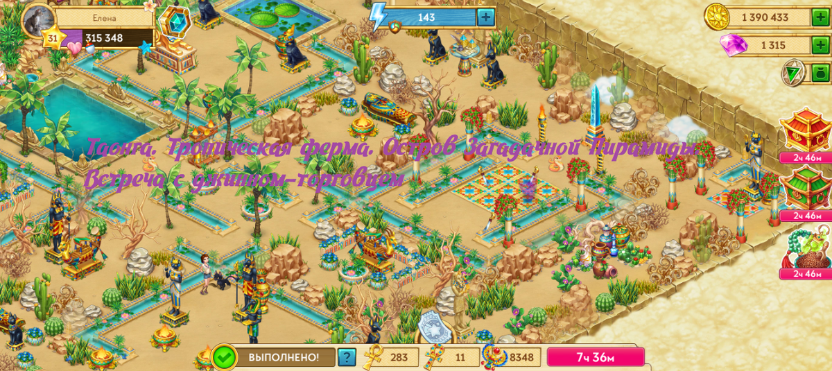 В своих обзорах я рассказываю сугубо о своем опыте игры и абсолютно не настаиваю на истину в последней инстанции. Скриншоты сделаны мной с одной из моих страничек. Итак, напомню. Основная цель похождений в Пирамиду помимо приятного времяпрепровождения – приобретение на домашний остров фонтана, дополнительного источника выносливости и ошейников для кошки, в которых она из симпатичного и почти бесполезного создания становится полноправным питомцем, приносящим бонусы своему хозяину. Сама кошка (разработчики ее назвали Найтой) дается в нагрузку за 13 удачных прохождений всех испытаний в Пирамиде. И без ошейника за единичку энергии она дает примерно раз в сутки амулеты Ра, немного монет и опыта, а потом путается под ногами у персонажа игры и забавно потягивается. Ошейник для кошки можно купить в палатке археолога за особые артефакты, анхи фараона. Цена вопроса – 12 шт за один предмет. А вот сами анхи фараона даются за призовые места в соревнованиях (и, как показала практика, это совершенно