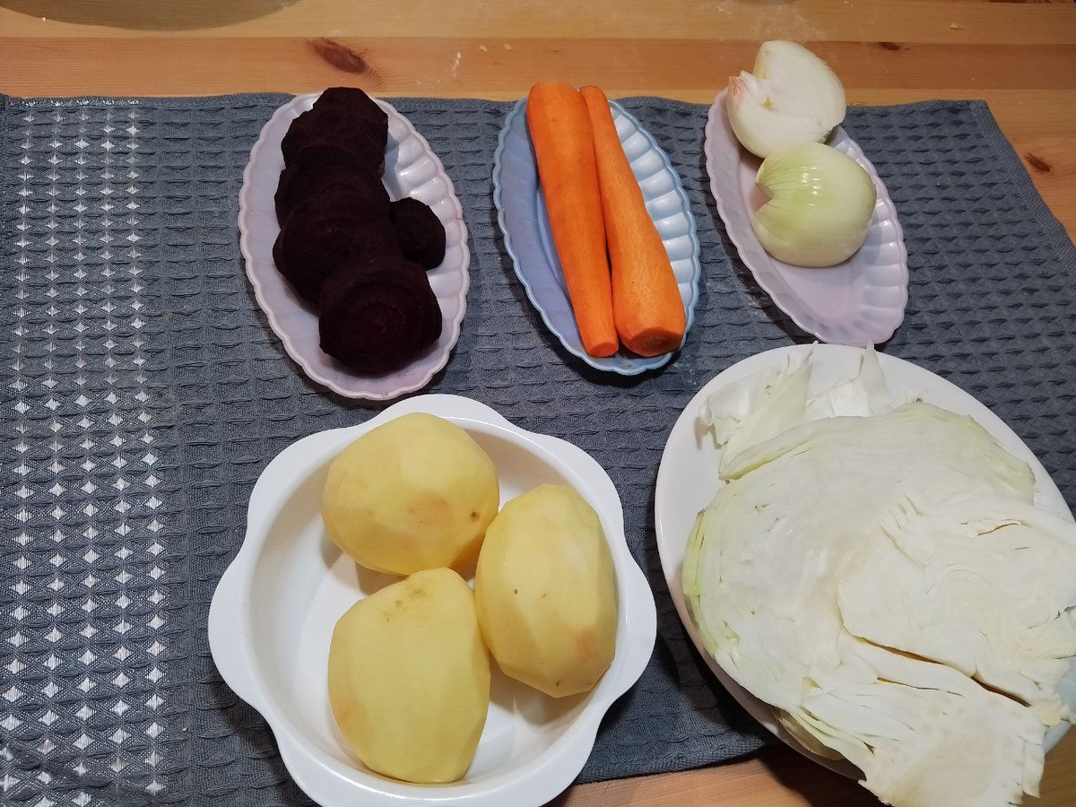 Овощное рагу это самый полезный гарнир. Готовить можно из любых овощей, лучше сезонных. Рагу может быть не только из одних овощей, но и с мясом, с грибами. Часто перед тушением овощи обжаривают, запекают.или немного отваривают. А потом соединяют, добавляют заливку и доводят до готовности. Для приготовления классического зимнего рагу из тушеных овощей нам понадобится: Для рагу Для соуса Правило 1. Масса картофеля и капусты составляют в 2 раза больше, чем все остальное овощи вместе взятые. Свекла + морковь : картофель : капуста=1:1:1,5 Больше 4-х овощей соединять вместе не рекомендуется. Шаг 1. Свеклу нарезаем мелко, т. к. она варится дольше всех. На дно кастрюли наливаем 1-2 столовых ложки растительного масла из нормы . Высыпаем свеклу, заливаем 50 г воды и начинаем варить под крышкой на среднем огне. Нарезаем картофель брусочками, желательно тонкими. Высыпаем в кастрюлю на свеклу. Продолжаем тушить под крышкой. Нарезаем капусту перьями, немного