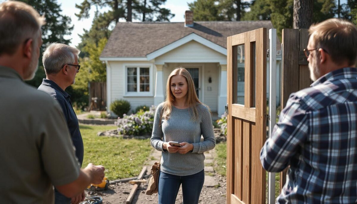 Но, подъехав к своему участку, она увидела серую «Газель» и пару незнакомых мужчин у ворот. Один держал в руках рулетку, другой говорил по телефону — судя по фразам «Здесь точно несущая стена…», «Можно будет снести…» — они явно обсуждали перепланировку. В калитке кто-то прошёлся по двору, скрипнула дверь дома.
