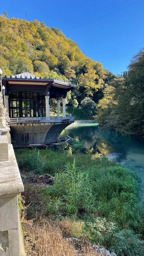 Как сэкономить на экскурсиях и гулять в свое удовольствие по городам Абхазии. Сейчас я говорю о местах пешей доступности, максимум взять такси внутри города (межгород встанет в копейку, его лучше и не рассматривать). Я много пишу про Абхазию в подборке https://dzen.ru/suite/adca86f7-8f3f-472c-a501-ee541d2a95c4?share_to=link, и составить собственный маршрут не составит труда. Гагра, Сухум, Новый Афон - можно неспешно изучить самим, и в этой статье погуляем по живописным и классным для фоток местам. Фото я делала в ноябре 2024 г. Станцию реставрируют по полной, так что скоро она будет еще прекраснее, но флер заброшки для атмосферных фоток, конечно, уйдет. Свой путь мы начали с посещения заповедного места, которое ведет в грот Симона Кананита. Вход платный, но даже если вы не верующий человек, заплатите и заходите за фотками в красивейшей зеленой локации (за фотографиями рекомендую идти как можно раньше, чтобы было не жарко и мало людей, 7 утра идеально). Смотрим территорию заповедного ме